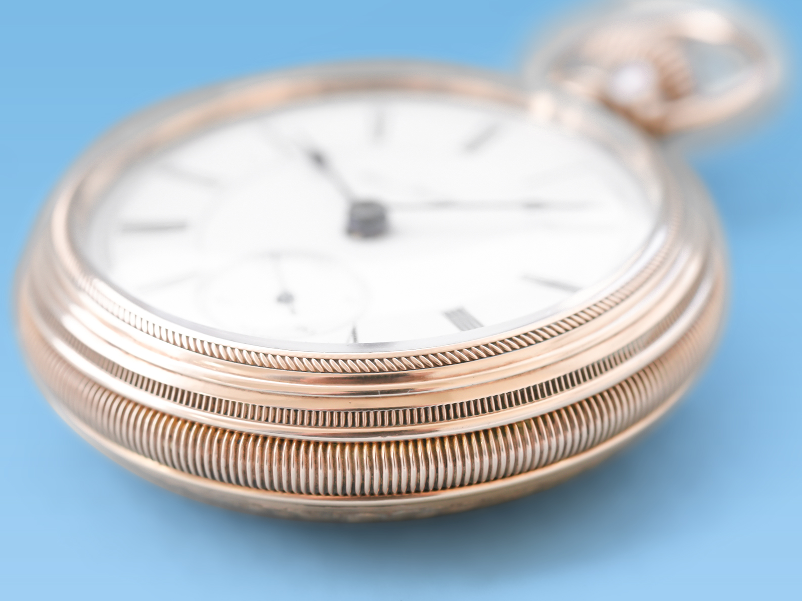 The movement is lever-set and housed in a warm gold-filled case, with soft tones that play beautifully against the dial and blued steel hands. It radiates the kind of old-world craftsmanship you feel as much as see. This is a watch that tells more than time — it tells a story. Whether you’re a seasoned collector or simply seeking a timeless heirloom, this “King of the Road” offers a rare and distinguished opportunity.